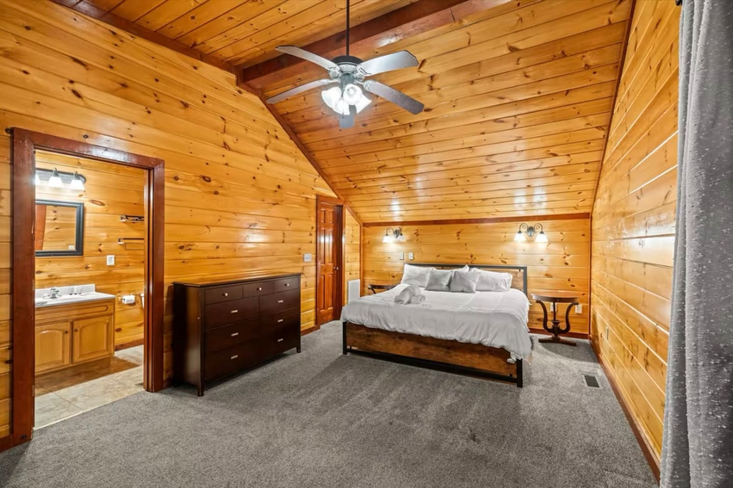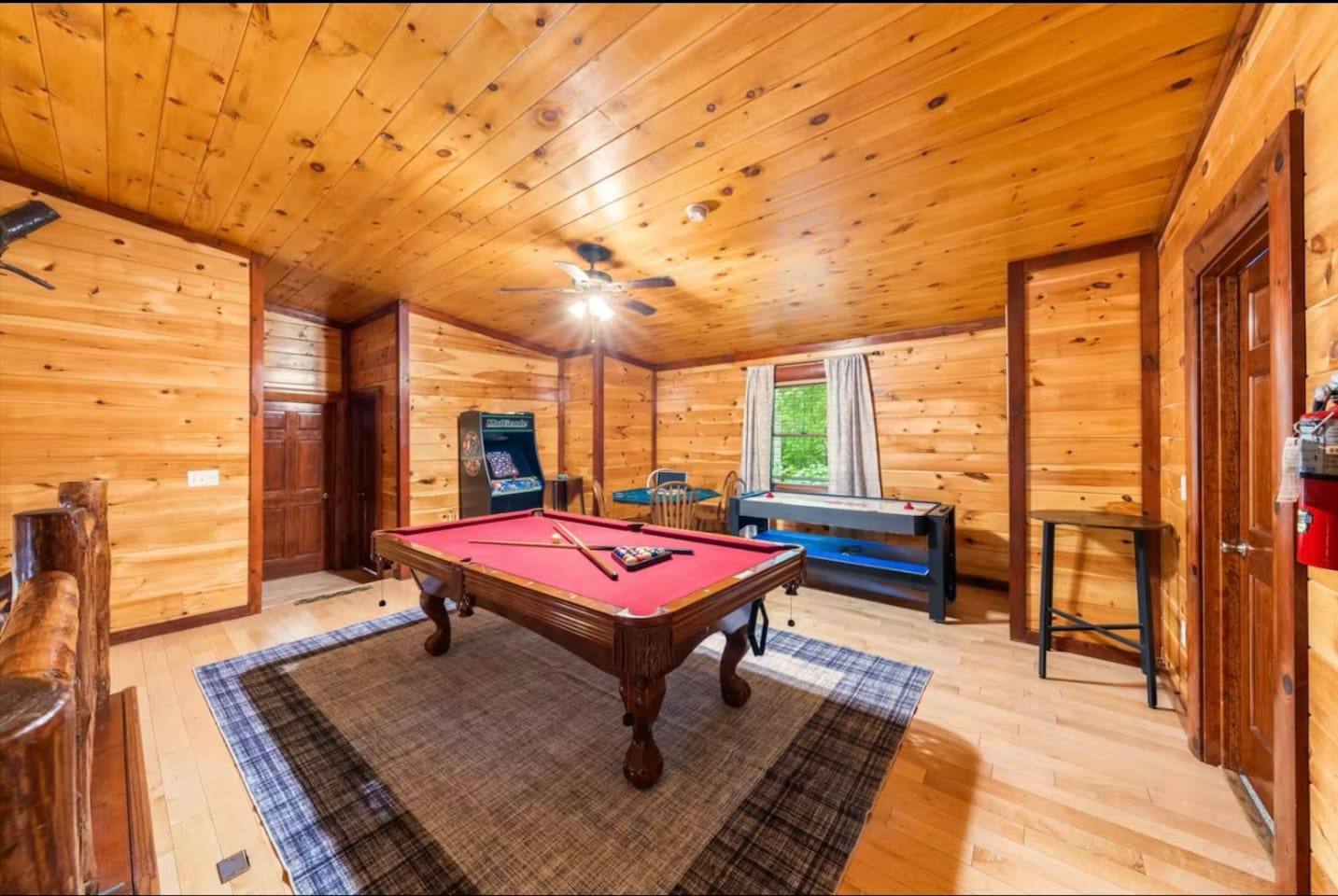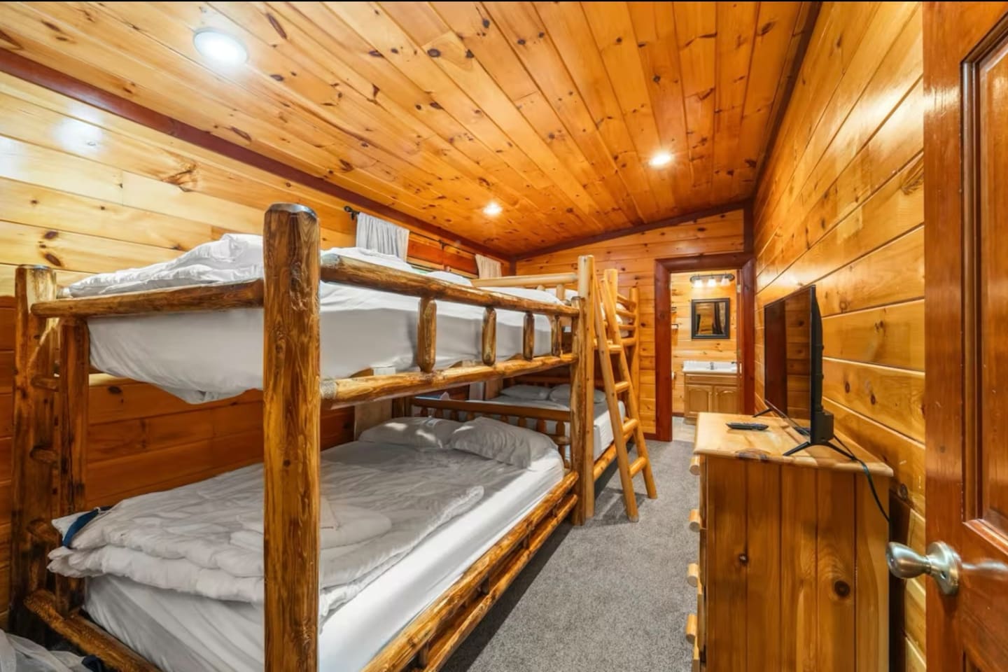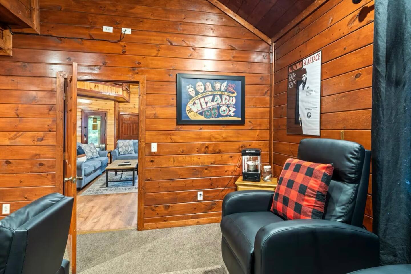 Tucked away in the heart of the Smokies, our stunning 2-story cabin, located in the exclusive Maranatha Resort, is where luxury meets adventure and is ONLY 5 minutes from the Cosby entrance to the Great Smoky Mountains National Park! Enjoy a private, peaceful retreat for your group while remaining just a short drive from Great Smoky Mountains National Park, Gatlinburg, Pigeon Forge, and other local mountain attractions. Whether you’re seeking outdoor adventure, family fun, or a quiet escape, this location provides the ideal setting for an unforgettable stay. With 6 spacious bedrooms and 6.5 bathrooms, this mountain retreat comfortably accommodates up to 18 guests—perfect for large families, multiple families, or group getaways. Inside, you’ll find room for everyone to relax and play—whether you’re catching a movie in the private theater room, challenging friends in the game room, or diving into fun in your very own indoor pool. Gather, unwind, and enjoy your stay in the Smokies—your mountain escape begins here! MAIN SPACES OF THE HOME: – 6 BEDROOMS & 6.5 BATHROOMS – BEDROOM 1 (Lower Level): * King-sized Bed * Smart TV * Nightstand & Lamps * Dedicated Workspace * Ensuite Bathroom BEDROOM 2 (Lower Level): * King-sized Bed * Smart TV * Nightstand & Lamps * Ensuite Bathroom BEDROOM 3 (Upper Level): * King-sized Bed * Smart TV * Nightstand & Lamps * Ensuite Bathroom BEDROOM 4 (Upper Level): * King-sized Bed * Smart TV * Nightstand & Lamps * Ensuite Bathroom BEDROOM 5 (Upper Level): * Full/Queen-sized Bed * Smart TV * Nightstand & Lamp * Ensuite Bathroom BEDROOM (Upper Level): * 2 Queen-sized Bunk Beds * Ensuite Bathroom – 6.5 BATHROOMS – * Ensuite Bathroom with a Tub & Walk-in Shower * Ensuite Bathroom with Walk-in Shower * Ensuite Bathroom with Walk-in Shower * Ensuite Bathroom with Shower/Tub Combo * Ensuite Bathroom with Walk-in Shower * Ensuite Bathroom with Shower/Tub Combo * Half Bathroom – GAME ROOM – * Pool Table * Air Hockey * Poker Table * Arcade Games – MOVIE THEATER – * 8 Reclining Chairs * Popcorn Machine * Smart TV – CHEF’S KITCHEN – * Fully Stocked * High-end Stainless Appliances * Large Refrigerator * Ample Cabinetry & Cooking Space * Coffee Maker – MAIN LIVING ROOM – * Smart TV * Indoor Fireplace * Large Plush Sofa * High Ceiling * Open Floor Plan – OUTDOOR FUN & AMENITIES – * Expansive Deck w/ Stunning Views * Indoor Heated Pool ($100/night) * Hot Tub * Fire Pit * BBQ Grill