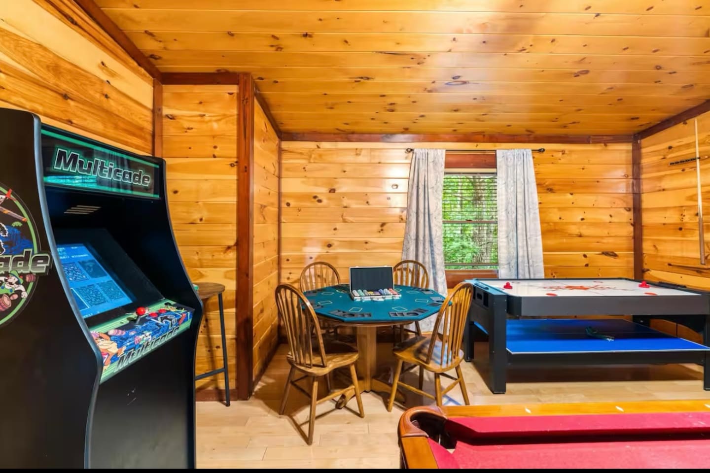 Welcome to Your Ultimate Smoky Mountain Getaway at Hilltop Hideaway! This 6-bedroom cabin is in a prime location & has EVERYTHING you need for an amazing vacation in Cosby, TN! • Heated Indoor Pool • Hot Tub • Fire Pit • Movie Theater • Game Room: Pool table, Air Hockey, Poker Table & Arcade Games • Corn Hole • BBQ Grill • Fully Stocked Kitchen • Indoor Fireplace • Each Bedroom has a TV & Private Bathrooms • Dedicated Workspace • Family Friendly & Pet Friendly • Washer & Dryer • Ample Parking